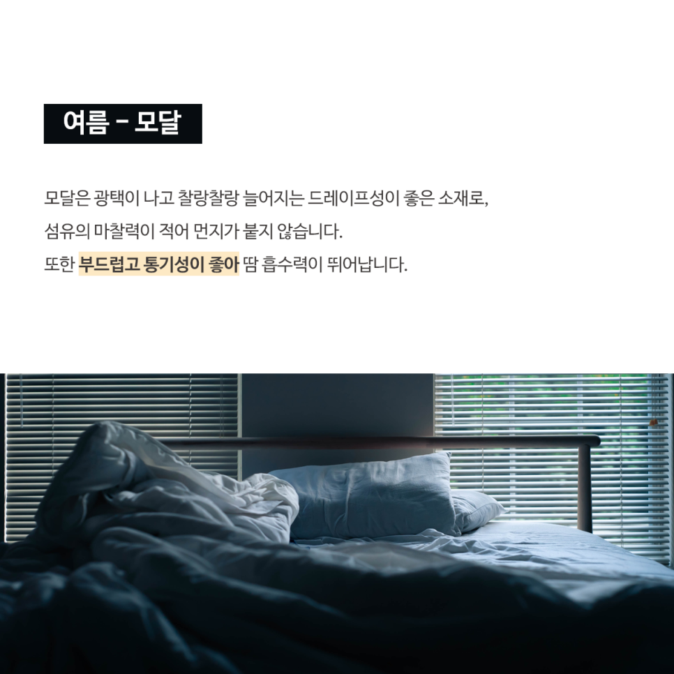 첫 번째로 여름에 사용하시는 걸 추천드리는 소재는