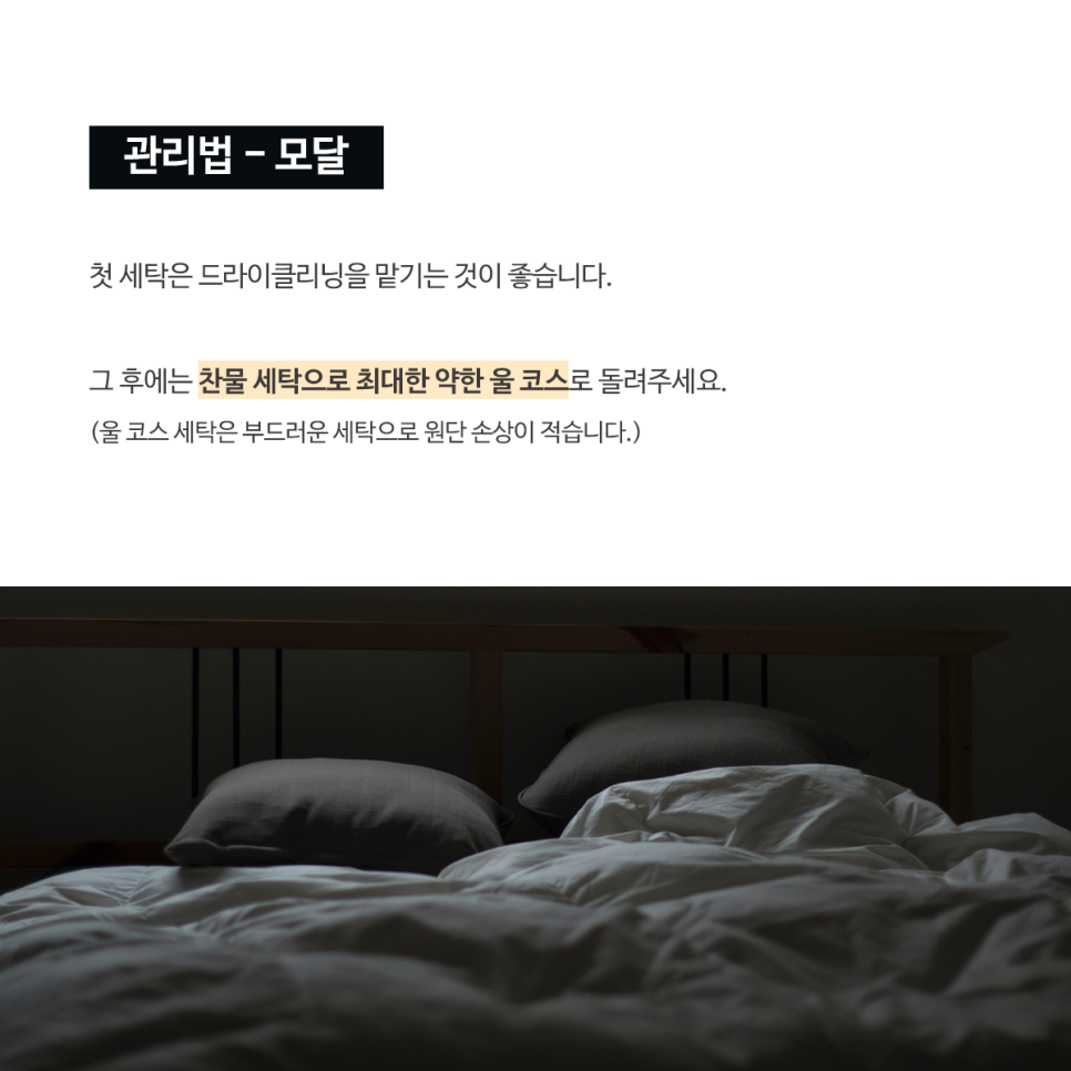 모달이불의 첫 세탁은 드라이클리닝을 맡기는 것이 좋아요❕