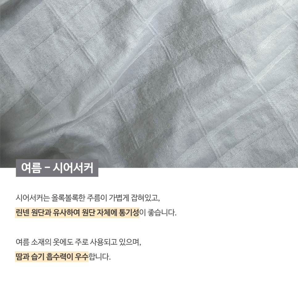 시어서커는 올록볼록한 주름이 가볍게 잡혀 있고