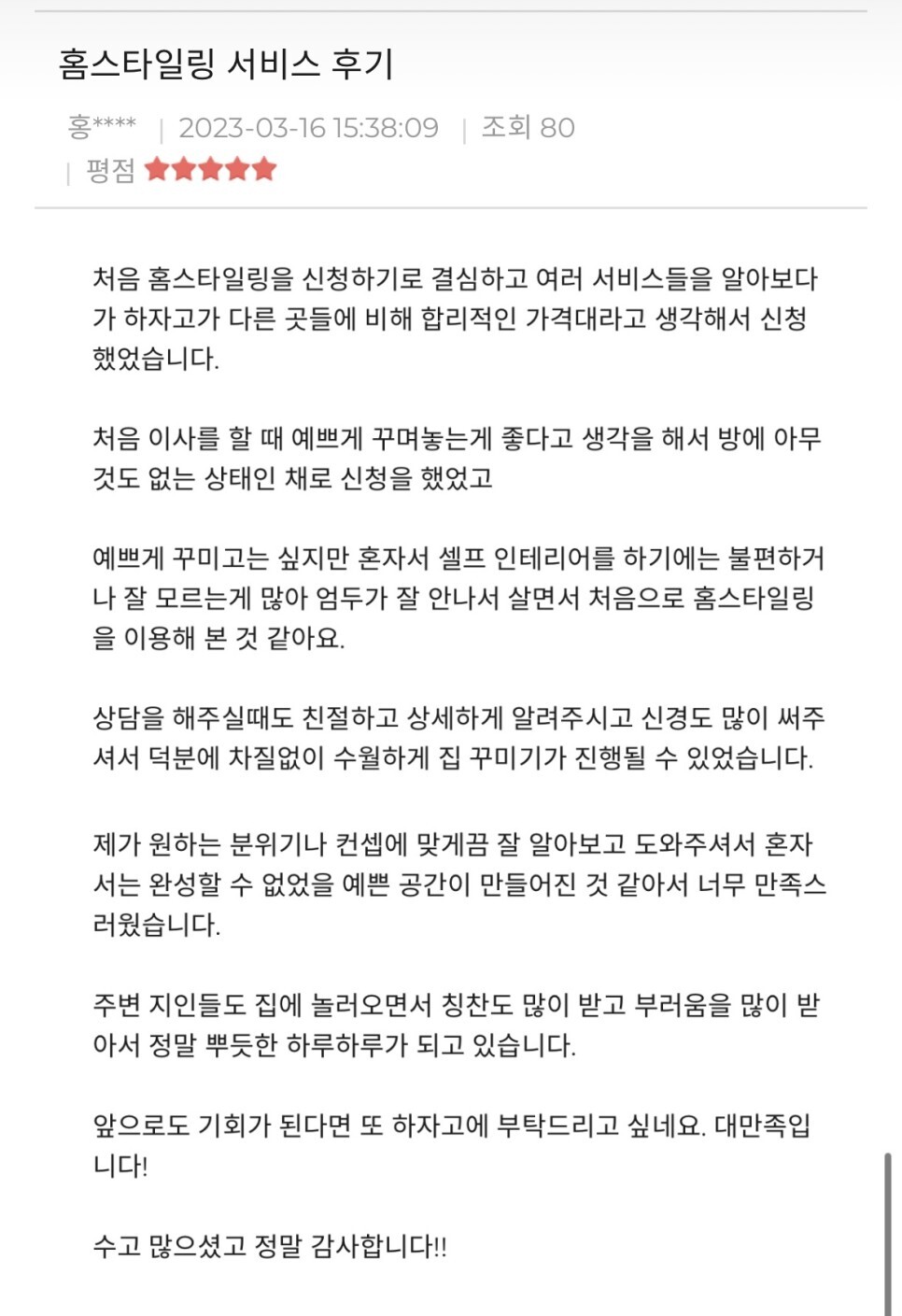 하자고 홈스타일링 서비스를 믿고 맡겨주신