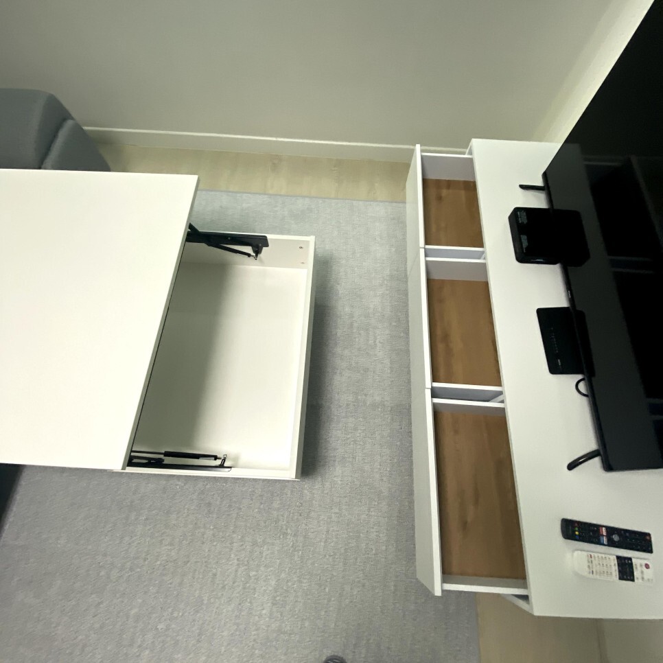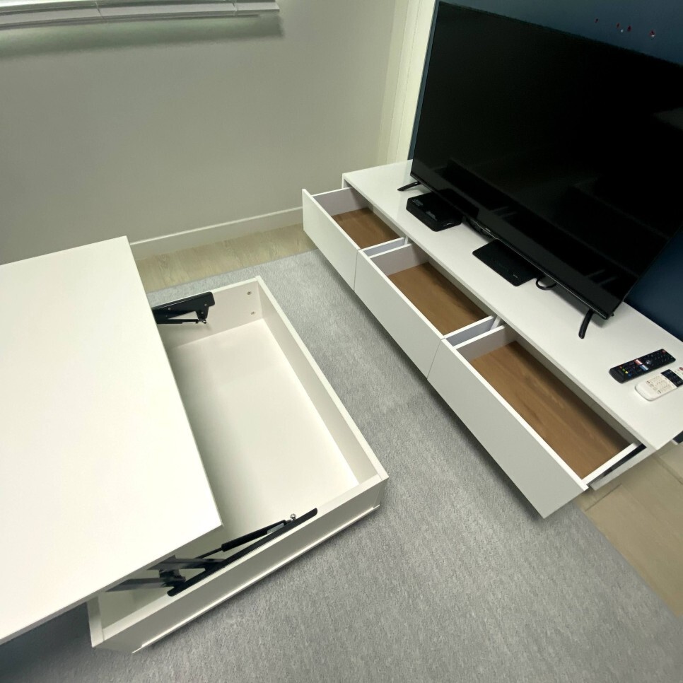 수납이 가능한 전신거울과, 리프트테이블, 거실장과 함께라면